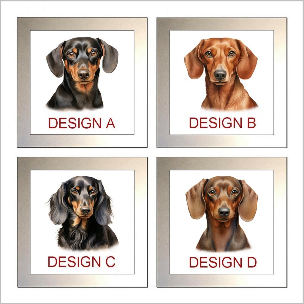 These Glass Drinks Coaster feature delightful DACHSHUND images and there are FOUR DESIGNS to choose from and they are personalised with the WORDING YOU REQUIRE .