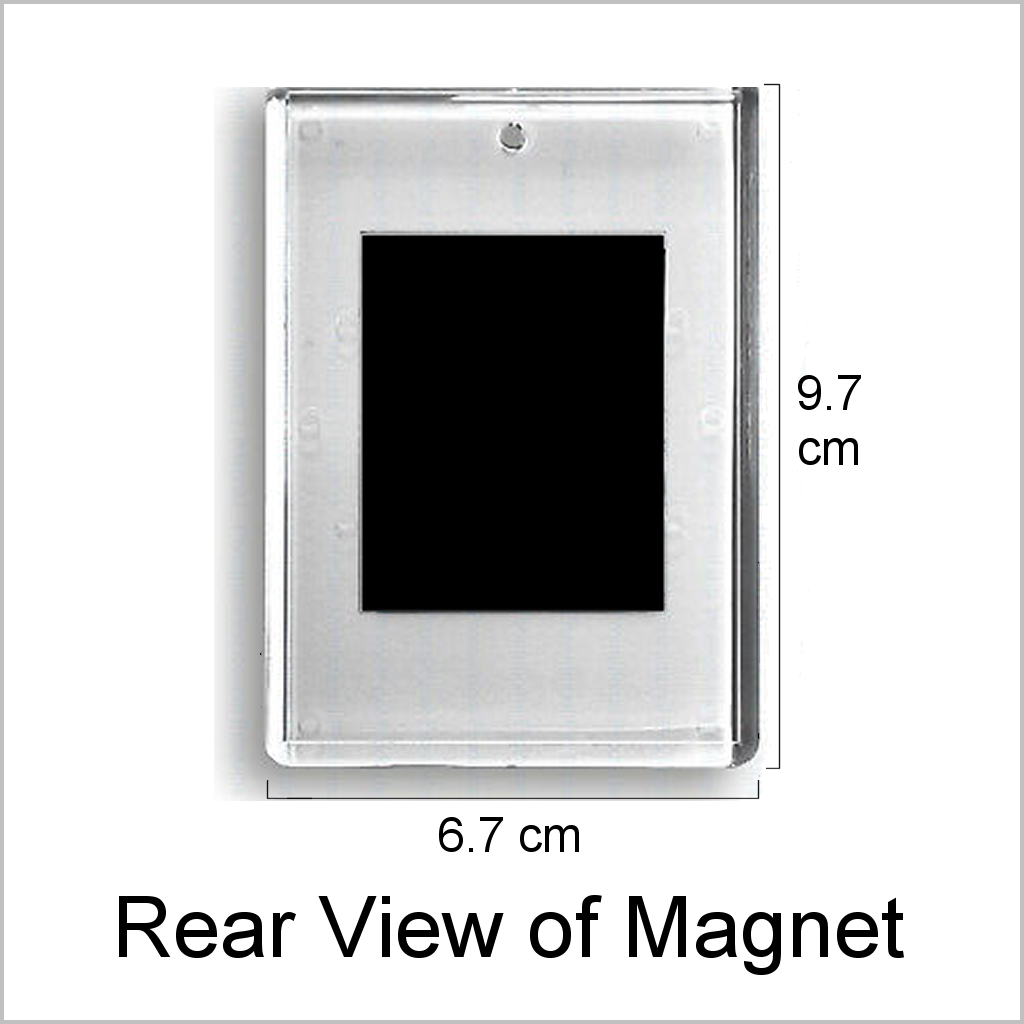 Each Magnet measures 9.7cm by 6.7cm and there is a magnetic strip on the reverse. The image measures 6cm by 6cm and is printed using Fade Resistant Photographic Inks.